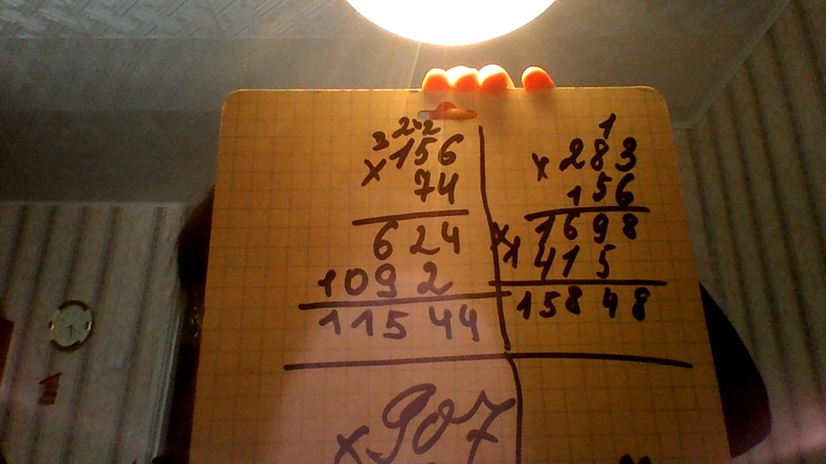 Сначала ты умножаешь 156 на 4, получается 624. Затем ты умножаешь 156 на 7, получается 1092. Потом ты складываешь 624 и 1092, но смещая 1092 на одну клетку влево. У тебя получится ответ 11544.