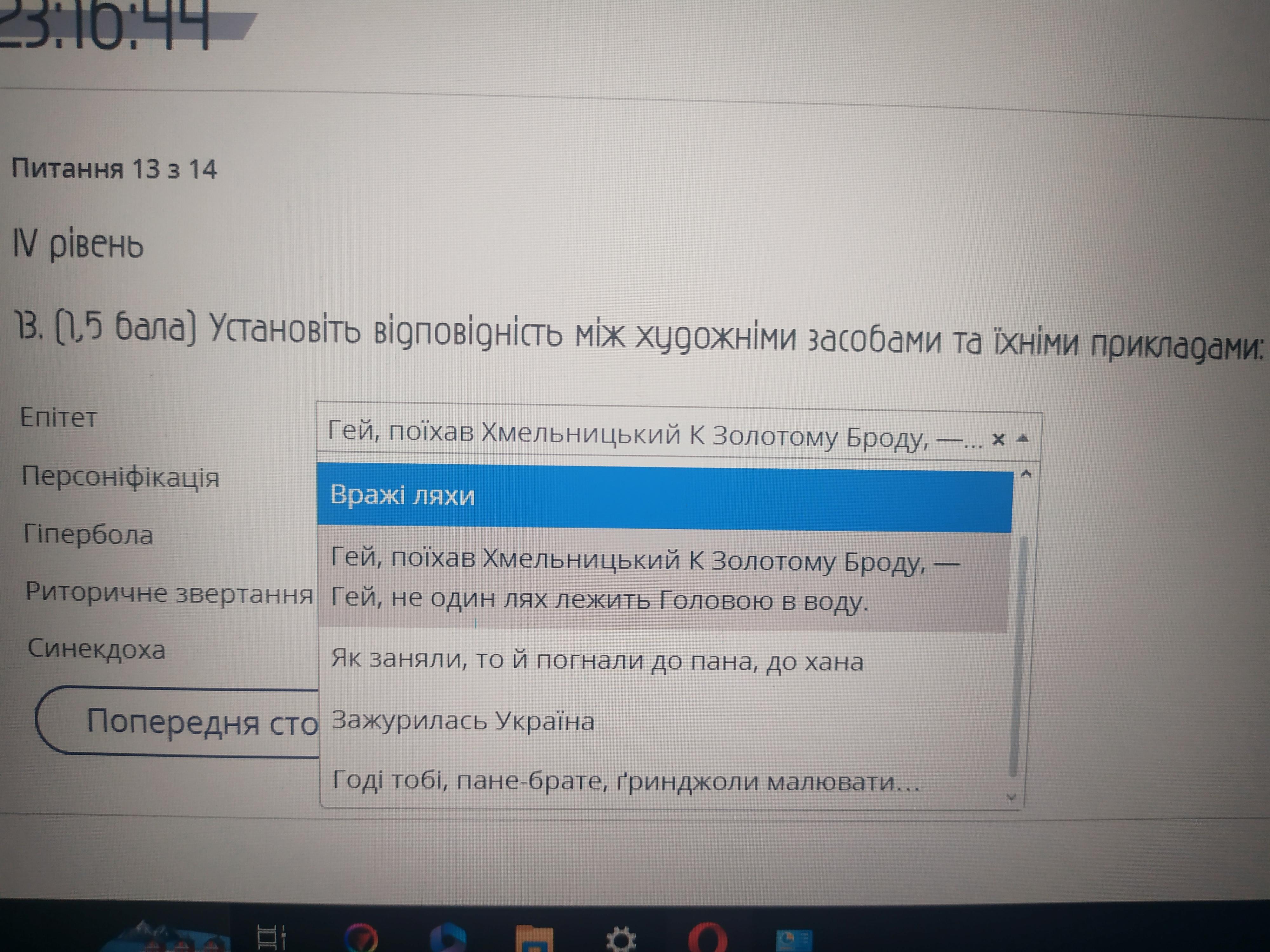 4) риторичне звертання – б) гей, поїхав хмельницький к золотому броду, гей, не один лях лежить головою в воду