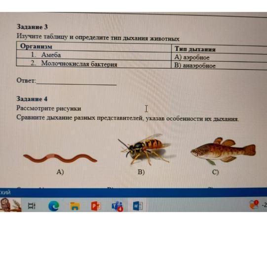 Сравните дыхание разных представителей, указав особенности их дыхания.