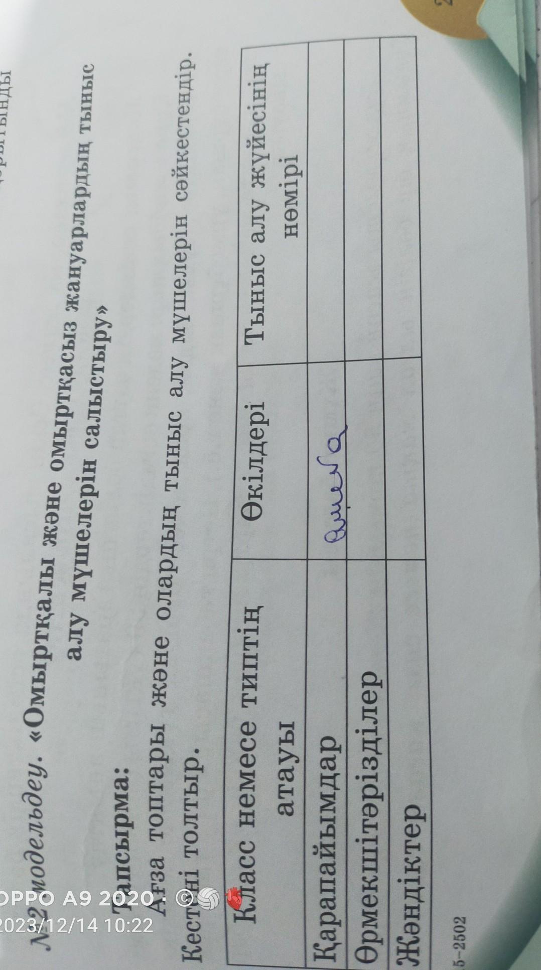 ағза топтары және олардың тыныс алу мүшелерін сәйкестендір