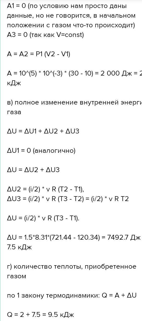 газа Т1 = 200 К. Найти изменение внутренней энергии газа U.
