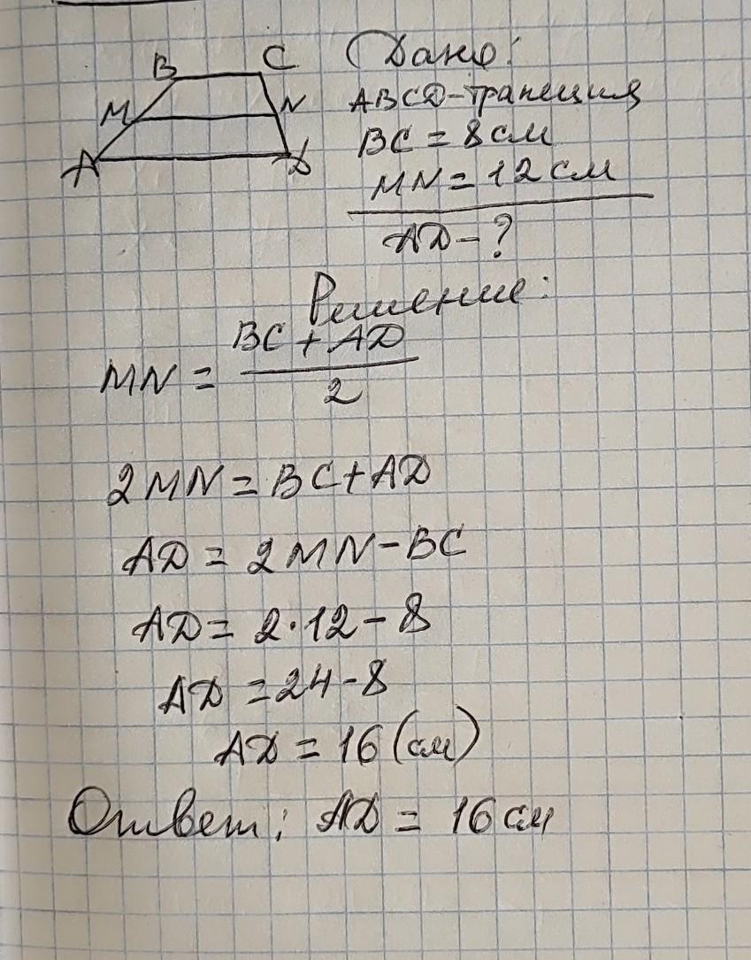 Знайдіть основу трапеції, якщо її друга основа і середня лінія відповідно
