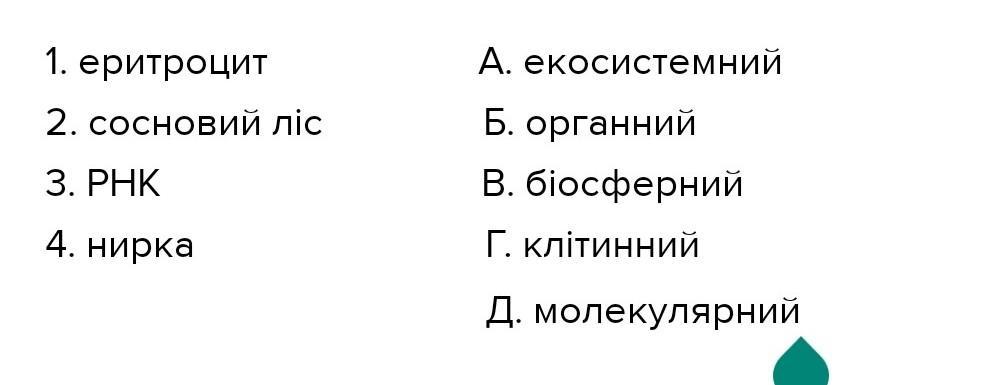 Установіть відповідність між рівнями організації живої матерії та наведеними прикладами.