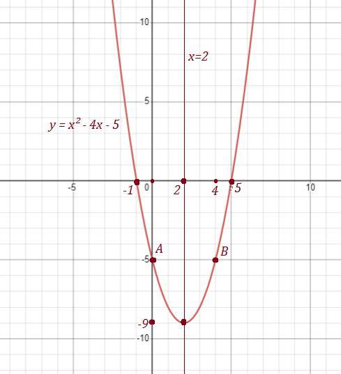 Координаты вершины : х(в) = 4/2 =2 , у(в) = 2²- 4·2 - 5 = -9 .