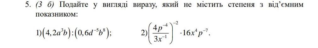 Подайте у вигляді виразу, який не містить степеня з від'ємним показником.
