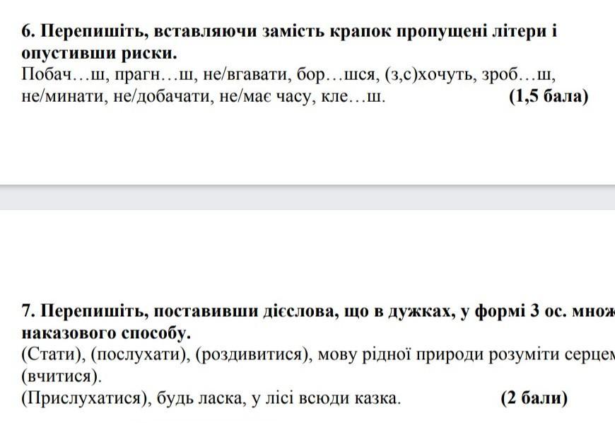 Ответ: 6. Побачиш, прагнеш, не вгавати, борешся, зхочуть, зробиш, не минати, недобачати, немає часу, клеїш.