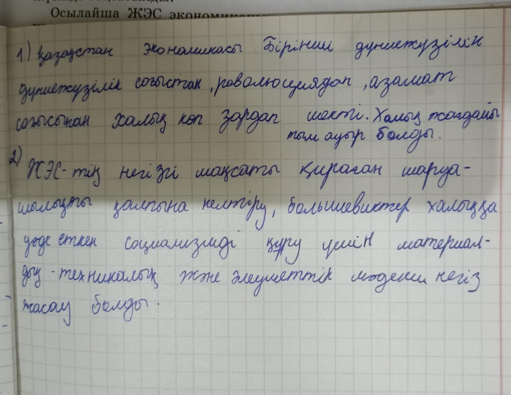 1. Жана экономикалық саясатқа көшу себептерін тұжырымдандар.