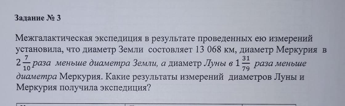 1) 13068 : 2 7/10 = 13068 : 27/10 = 13068 * 10/27 = 1452 * 10/3 = 14520/3 = 4840 (км) - диаметр Меркурия
