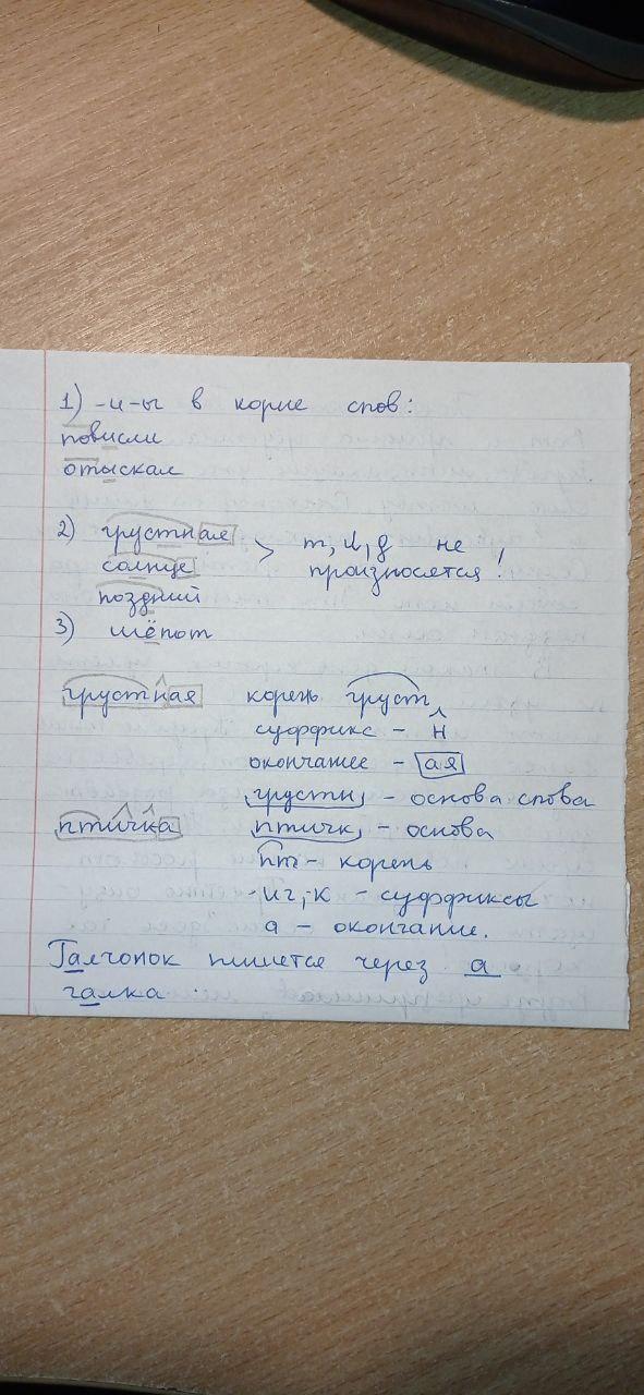 Помогите пожалуйста с заданиями, 1. Буквы и-ы в корне слова после приставки. 2. Непроизносимая согласная в корне слова. 3. Буквы о-ё после шипящих в корне. 4. Сделайте морфемный разбор слов: Грустная, птичка.