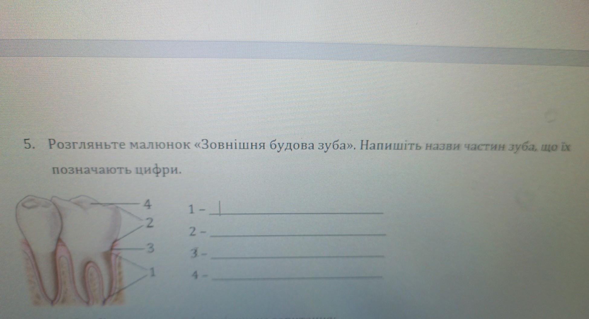 1. корень 2. коронка. 3. шейка 4. эмаль