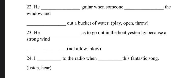 23. He doesn't allow us to go out in the boat yesterday because a strong wind blow.
