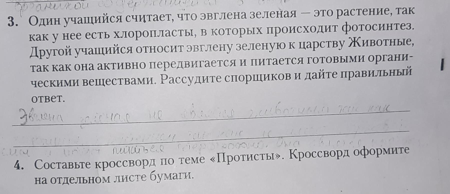 антон и сеня решили понаблюдать за ними в кабинете биологии. Для этого мальчики поместили в стакан с чистой прокипячённой водой амеб, хлореллу и эвглену зеленую. Через некоторое время, изучив воду с протистами под микроскопом, мальчики выяснили, что не все протисты выжили.