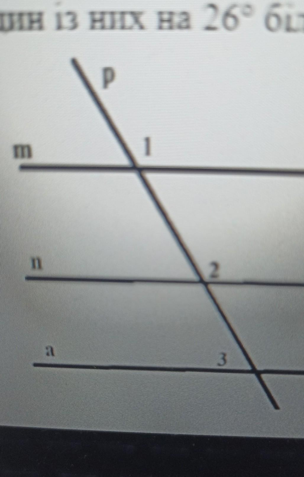 відомо, що кут 1 = 117°, кут 2 =119°, кут 3 =63°. Чи паралельні прямі м і н, м і а, н і а