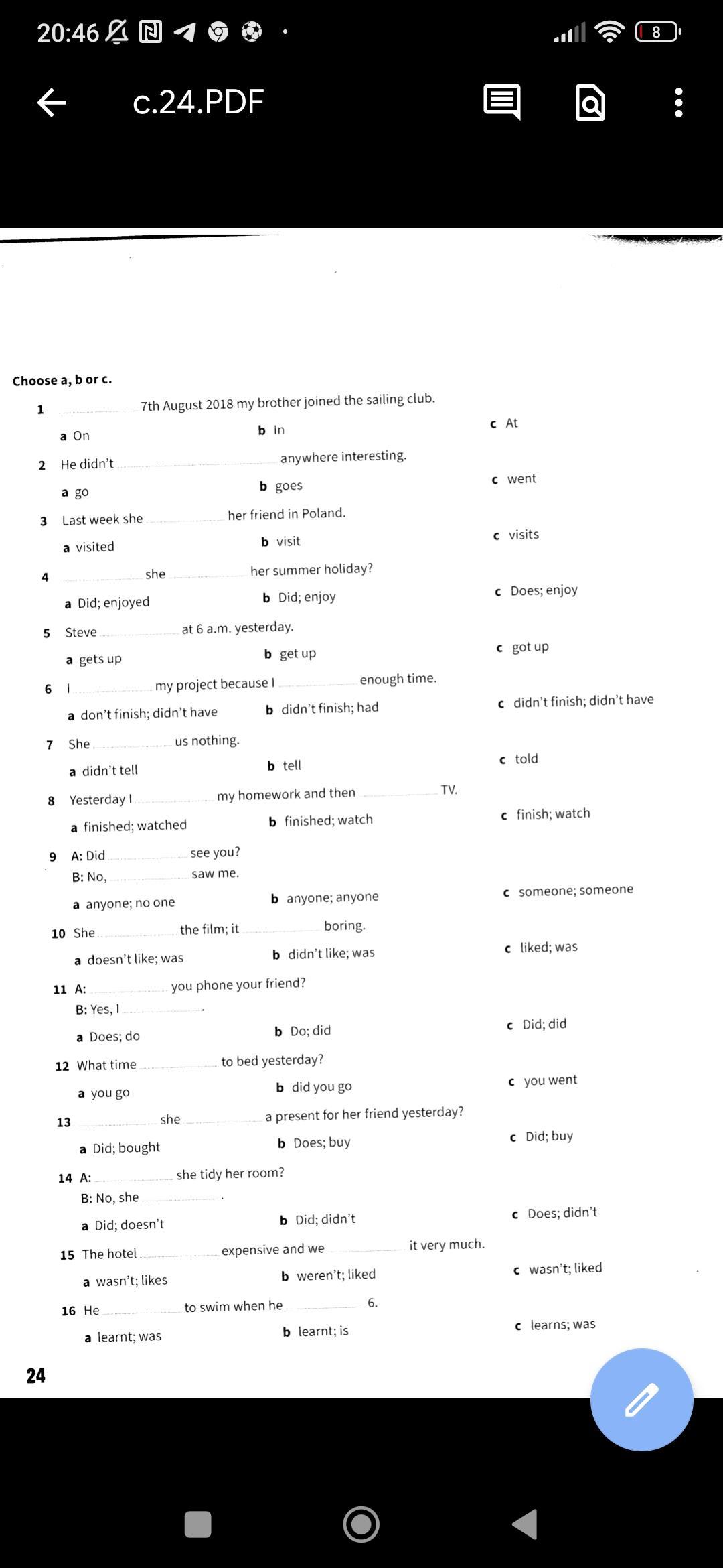 16. a) learnt; was