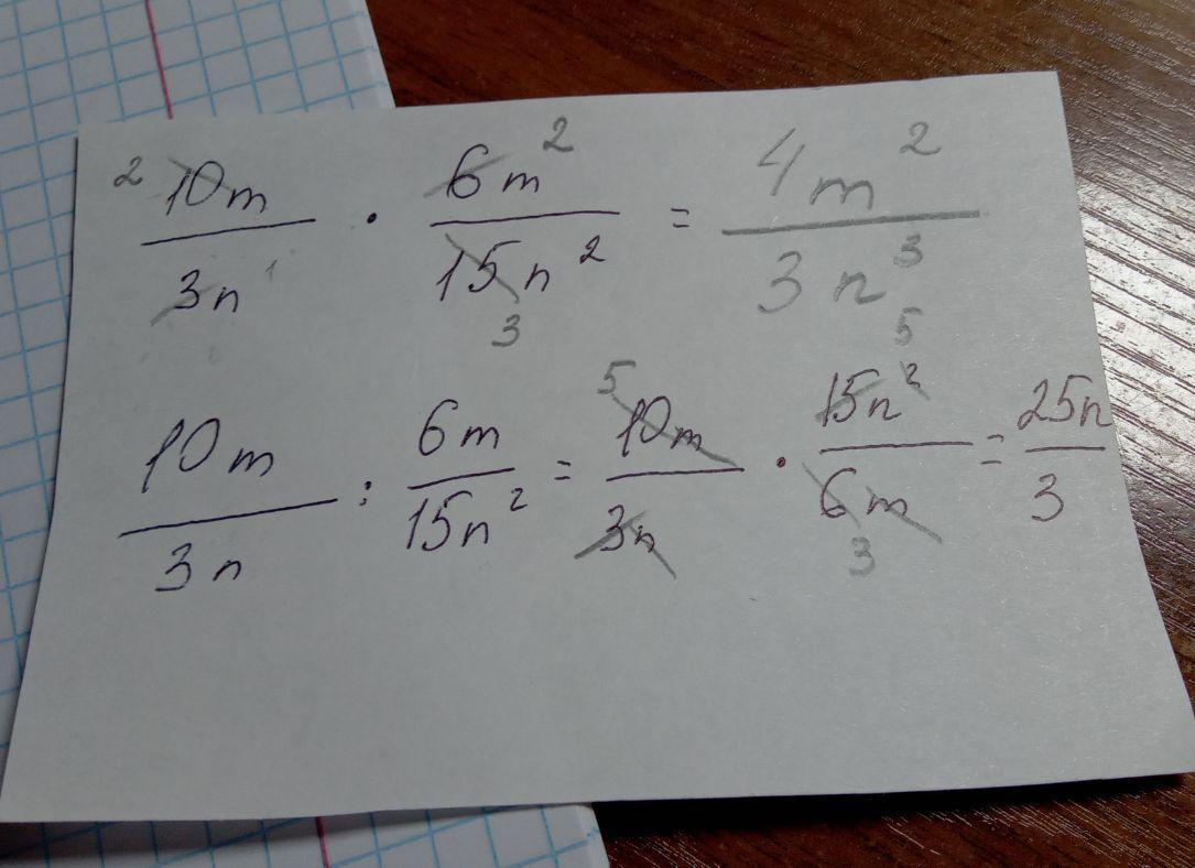 (10m)/(3m) * (6m)/(15n^2) = 4m/3n^2