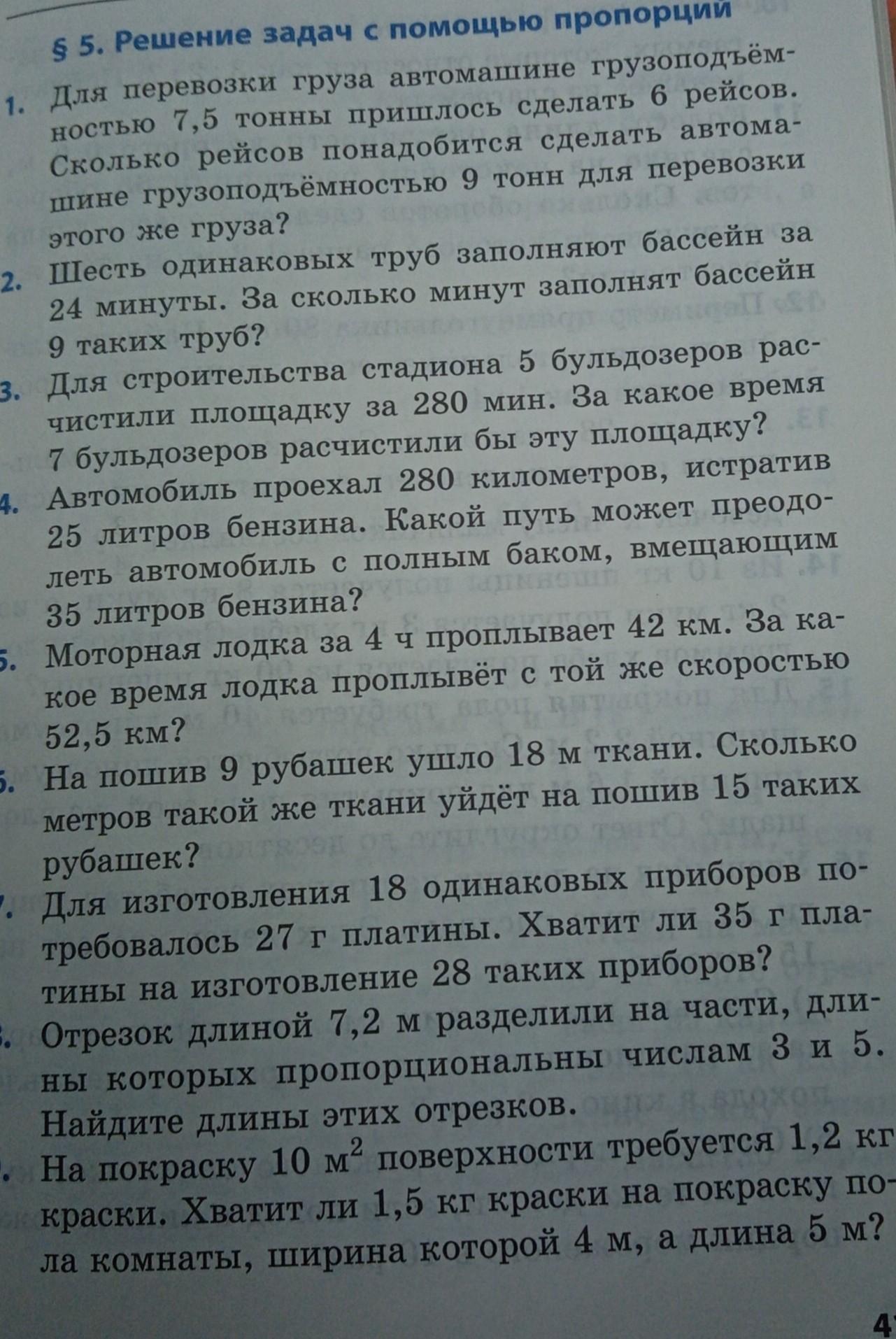 1: Чем больше грузоподъёмность - меньше рейсов. Получаем 7,5:9=х:6. 7,5 умножаем на 6 (будет 45) и делим на 9. Будет 5.