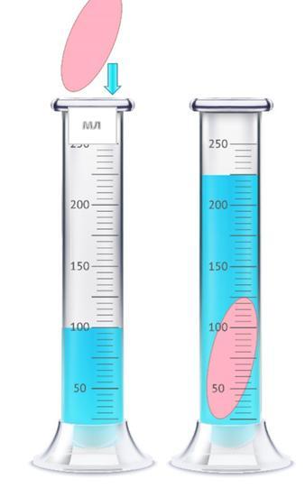 5. Об’єм плоского тіла дорівнює різниці між об’ємом рідини до занурення тіла та об’ємом рідини разом з тілом: