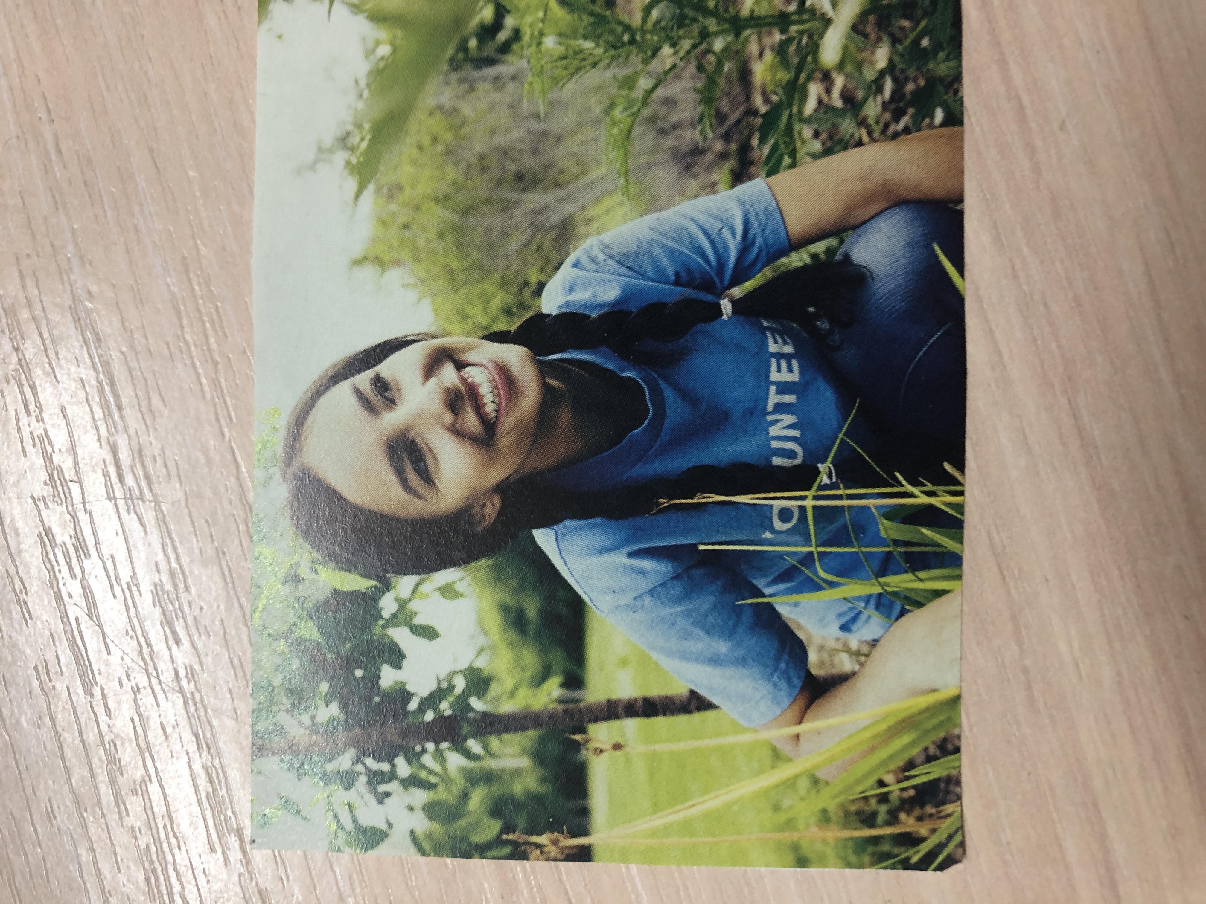 Людина яка зобразила на фото житє радісна, позитивна . В цієї дівчини дуже гарне волосся , каштанового кольору . В неї очі немов радісне сонечко, її очі наповнені радістю та щастям .її усмішка нагадує людям най щасливіші моменти у їхньому житі .