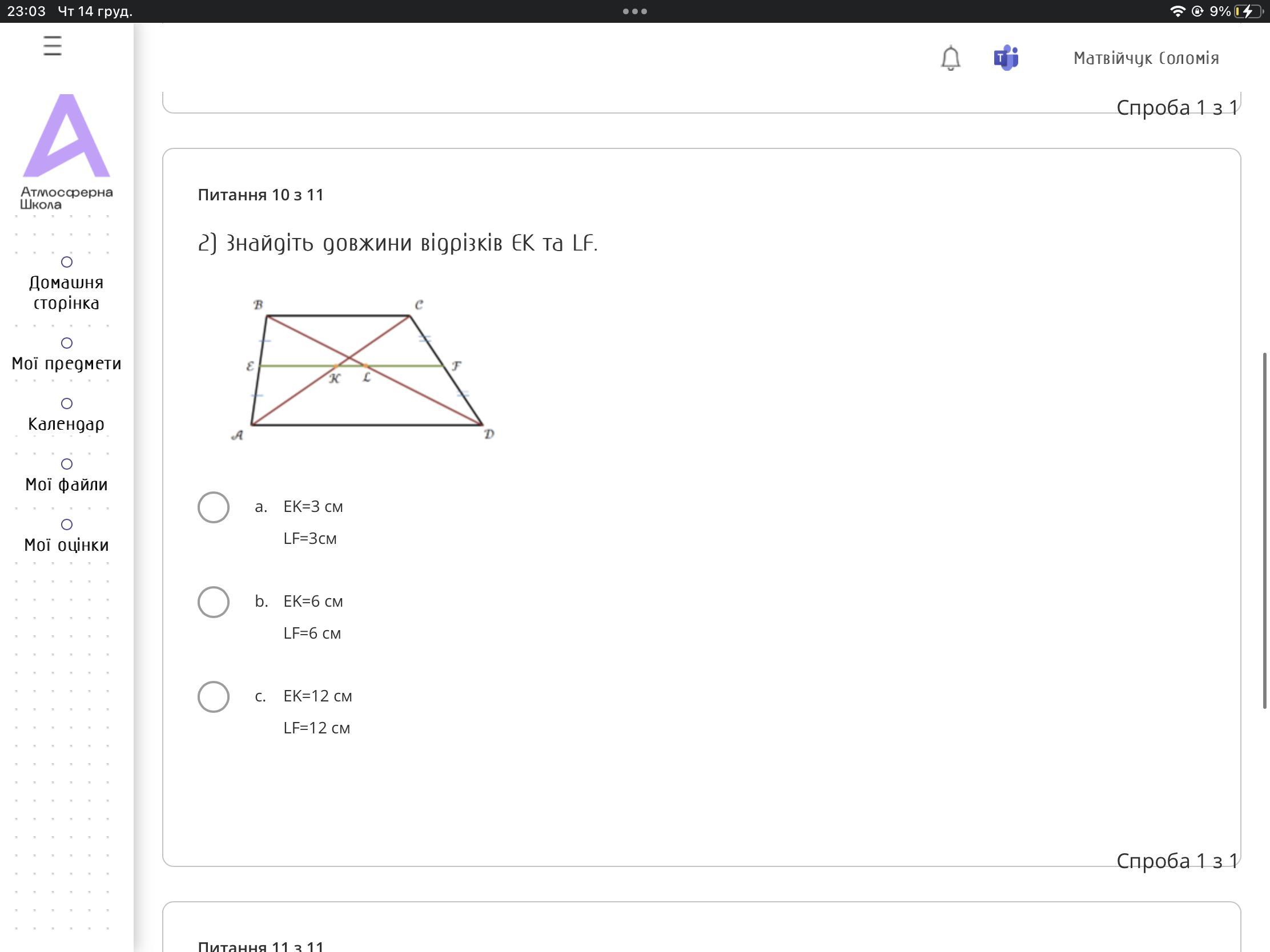 EK та LF є середніми лініями цих трикутників відповідно, отже дорівнюють - EK = LF = (BC/2) = 6/2 = 3см