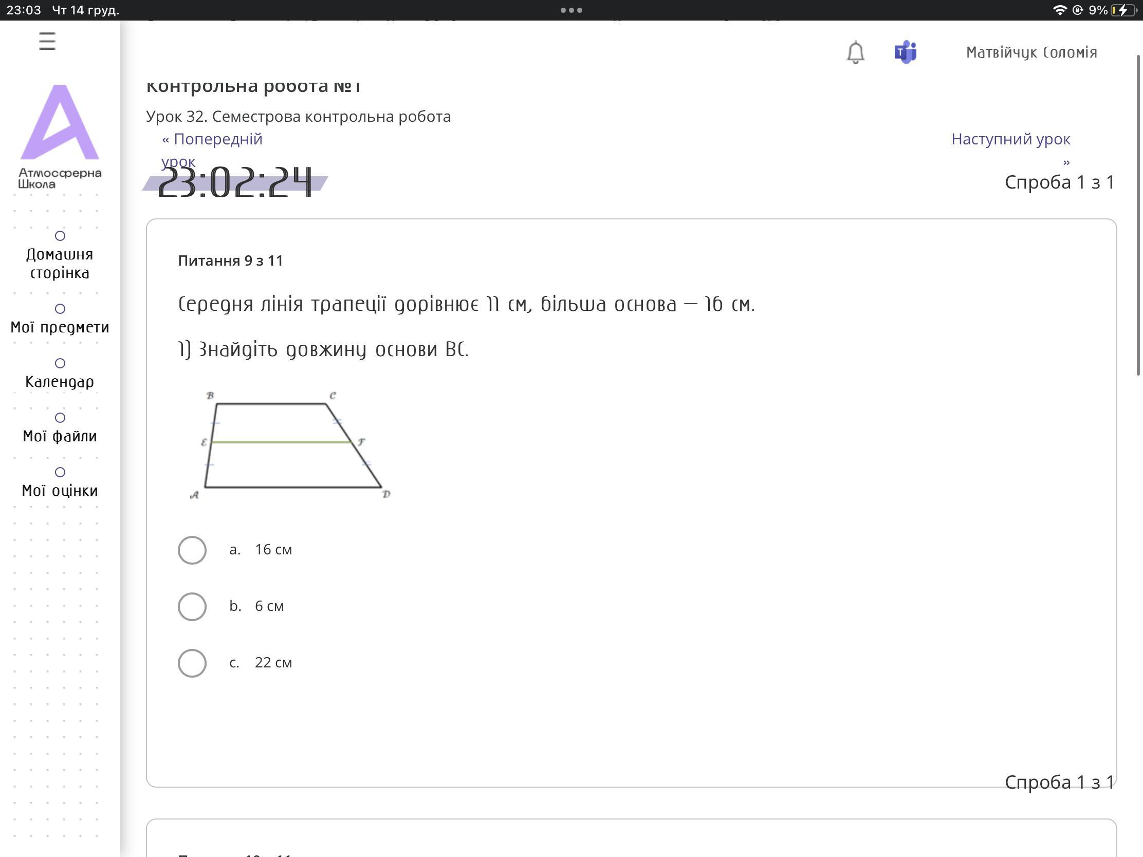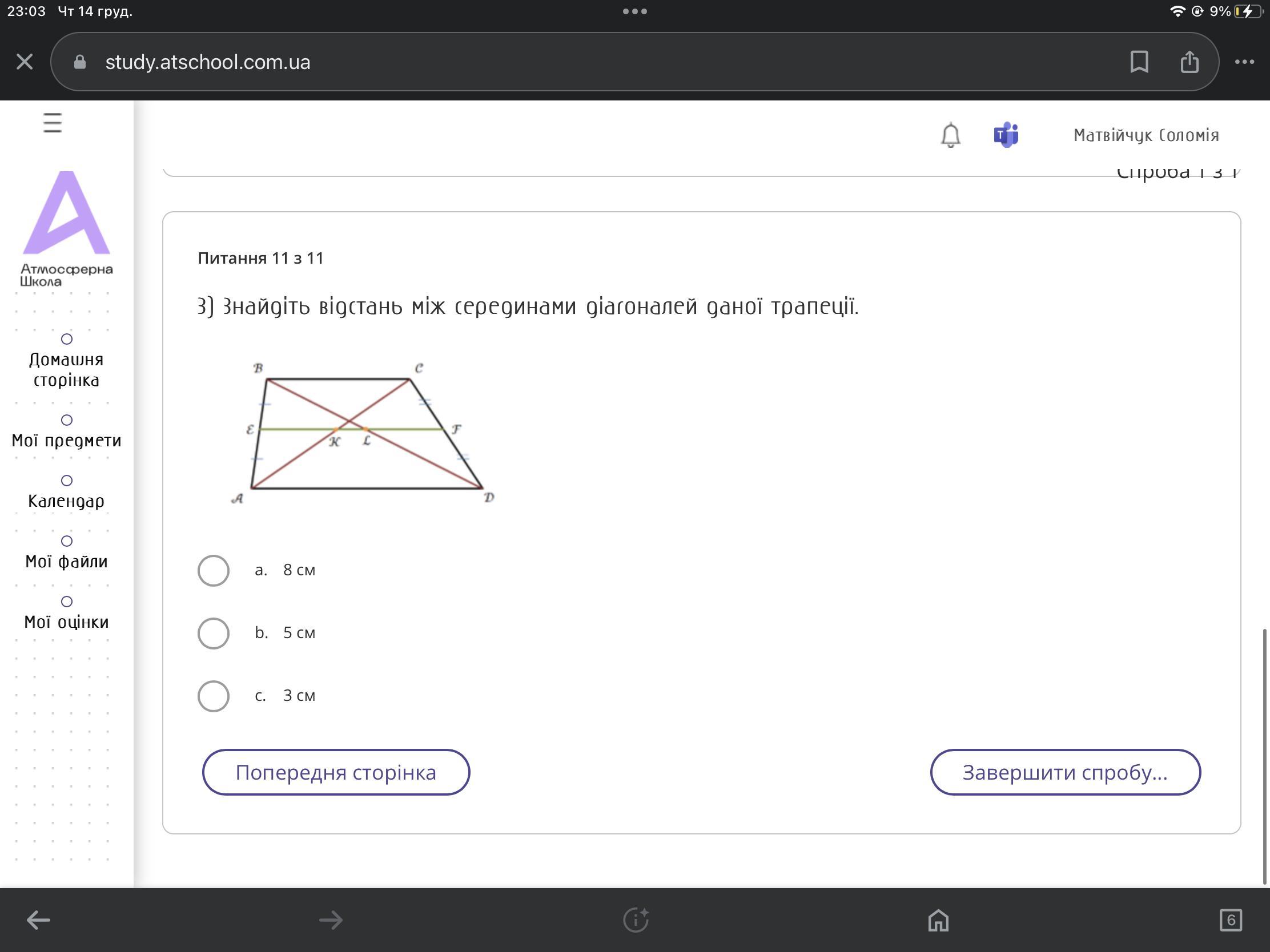 1) Середня лінія трапеції визначається за формулою - (AD + BC)/2