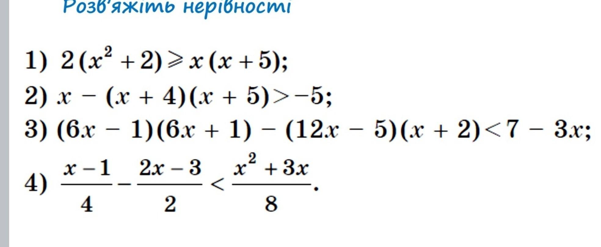 4) (x - 1)/4 - (2x - 3)/2 < (x^2 + 3x)/8