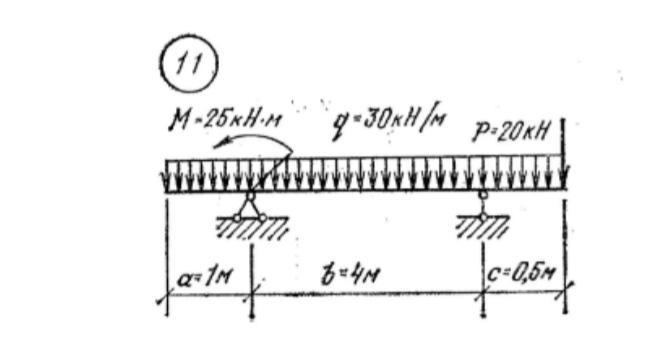 шарнирных опор балки. Значения уже заданы на рисунке.