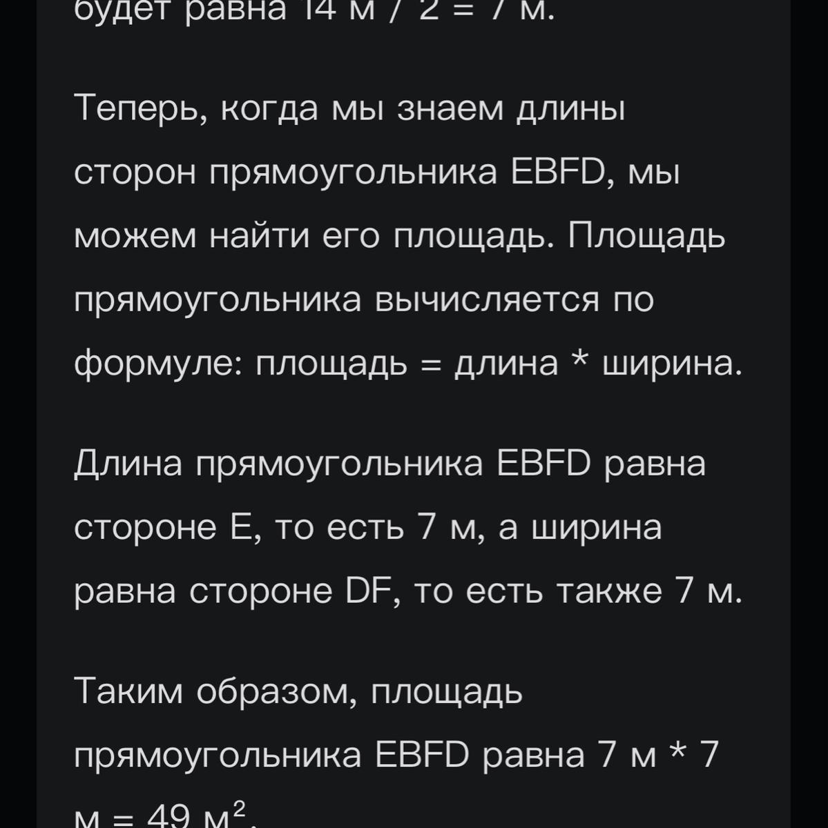 262. Из прямоугольника ABCD, высота которого 4 м, а основание 14 м, вырезан прямоугольник EBFD, у которого длина E равна половине А, а длина стороны DF равна половине