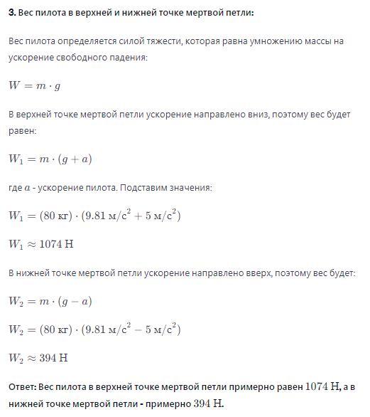 3.Вес пилота в верхней точке мертвой петли примерно равен 1074Н, а в нижней точке мертвой петли - примерно 394Н.