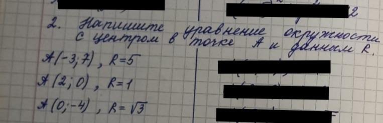 1. Для \(A(-3, 7)\) и \(R = 5\): \((x + 3)^2 + (y - 7)^2 = 25\)
