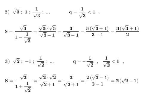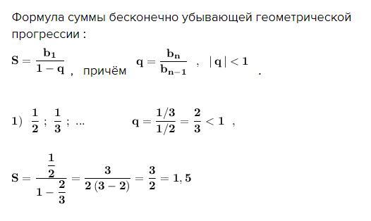 Формула суммы бесконечно убывающей геометрической прогрессии :