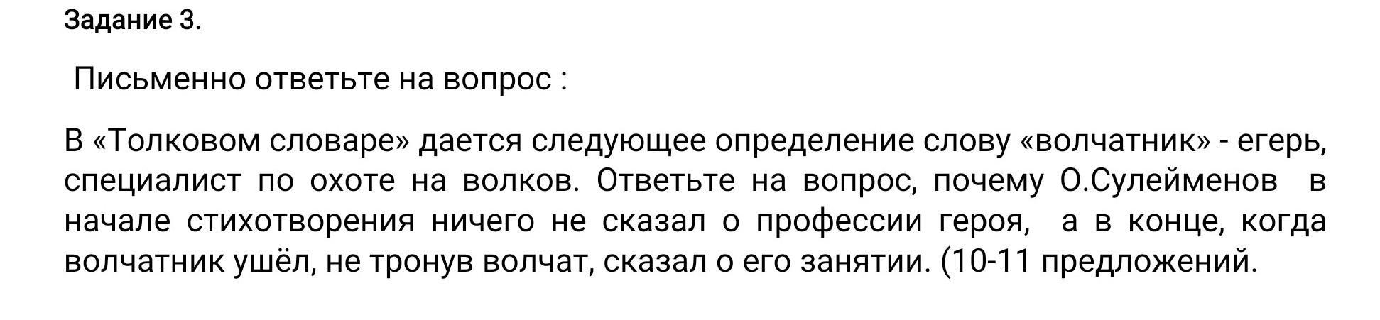 Ответ:Олесь Сулейменов може використовувати такий літературний прийом для того, щоб створити ефектне літературне зіткнення чи несподіванку для читача. Вірш може мати стратегічну організацію, де інформація про героя поступово розкривається. Розміщення визначення "вовчатник" на початку вірша може залишати читача в розпачі чи цікавості, адже не відразу стає зрозуміло, що герой – егер чи полювальник на вовків.