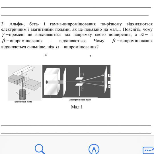 електричним і магнітними полями, як це показано на мал. 1. Поясніть, чому У - промені не відхиляються від напрямку свого поширення, а А і В - випромінювання