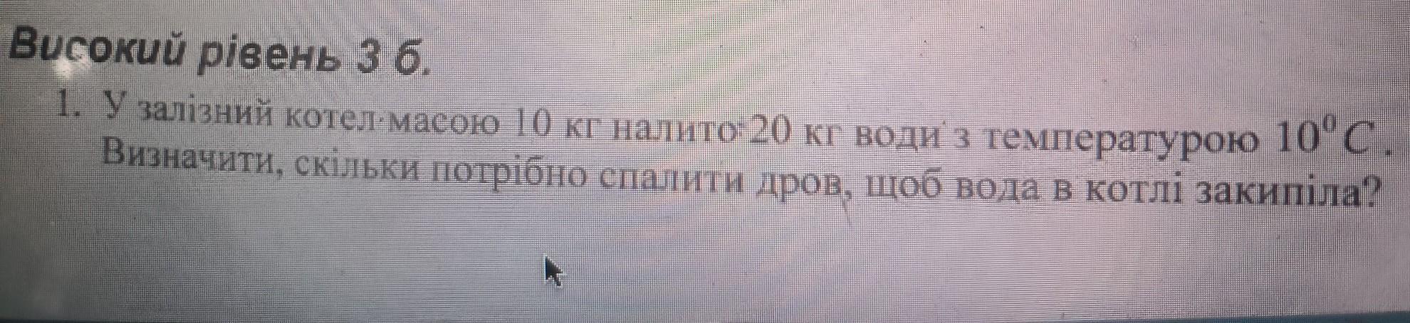 у залізний котел масою 10 кг налито 20 кг води з температурою 10°С. Визначити, скільки потрібно спалити дров, щоб вода в котлі закипіла?