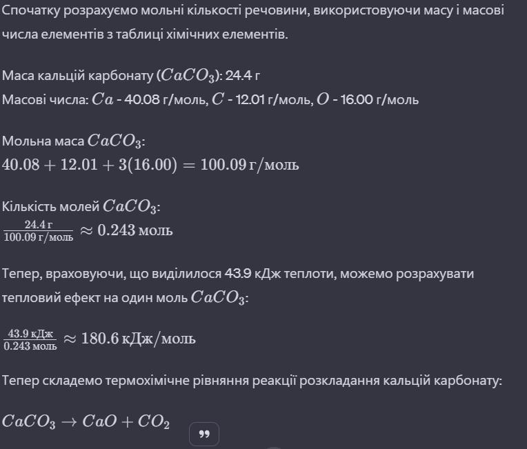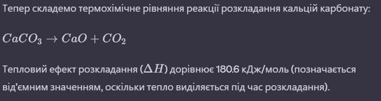 Зробіть розрахунки та напишіть термохімічне рівняння реакції (зазначте тепловий ефект) розкладу кальцій