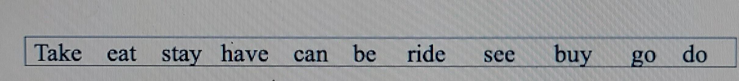 take be eat have stay see can ride go do