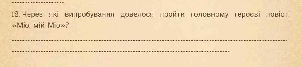 12. Через які випробування довелося пройти головному героєві повісті «Mio, мій Mio»?