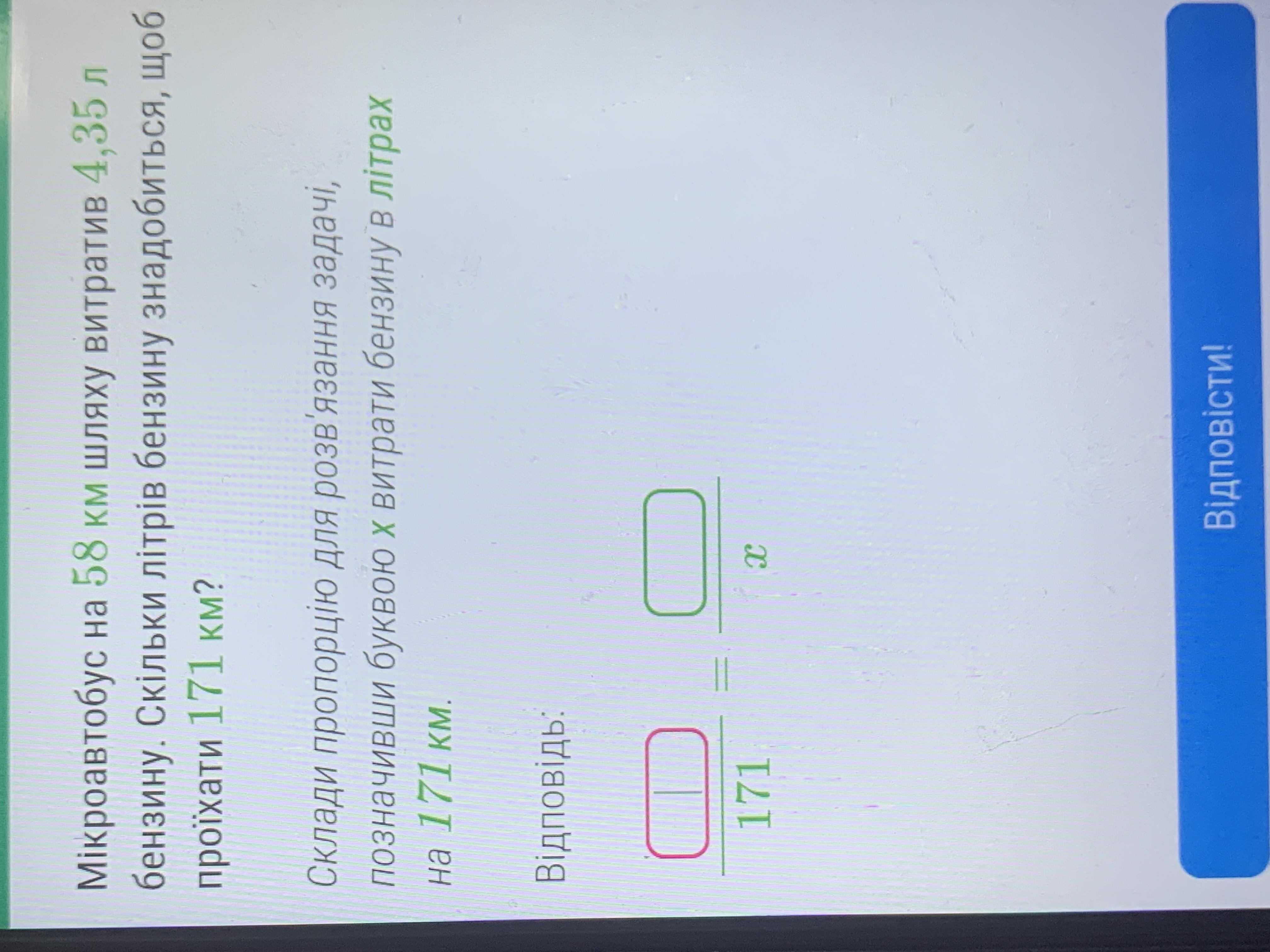 58 ділимо на литри потом то что вішло литри за 1 км умножаем на 171