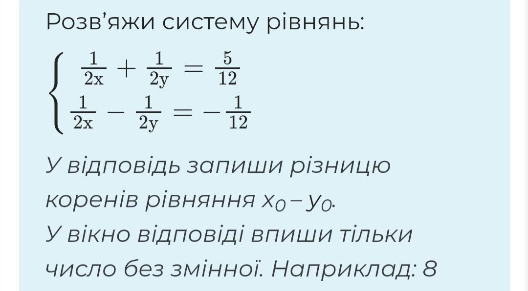 { 1/(2x) + 1/(2y) = 5/12 (I)