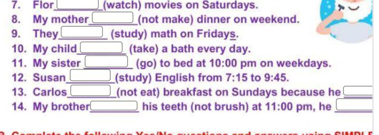 14)My brother doesn’t brush his teeth at 11 p.m., he, далі не видно