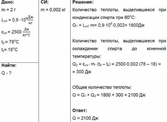 Какое количество теплоты выделится при превращении паров спирта в жидкость и её охлаждение до 18° C масса получившейся жидкого спирта 100 г его начальной температуре 78°C. Решите фанстиком пожалуйста я первая смена. Даю 75 балов