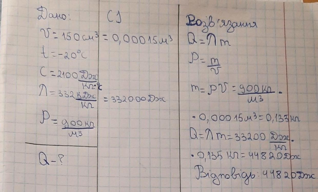 2. Яка кількість теплоти витрачається на плавлення 150 см3 льоду, взятого при