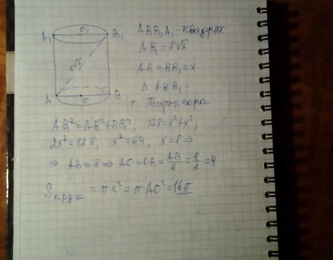 циліндра – квадрат, діагональ якого дорівнює 8√2 см.