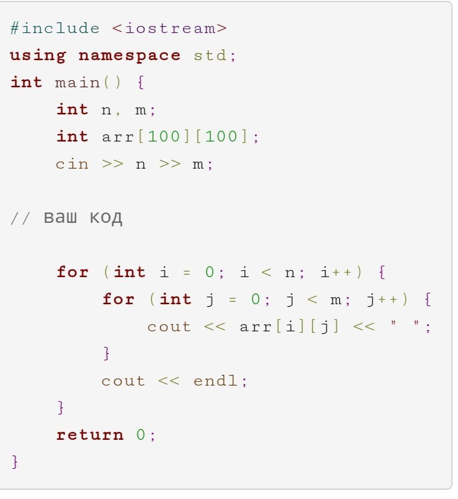 Выведите и строк по М столбцов заполненный соответствующим образом двумерный массив.