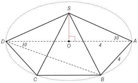 Треугольник ABD с углами 30, 60 - прямоугольный, центр описанной окружности - середина гипотенузы. Но нам достаточно, что в любом треугольнике с углом 30 сторона против этого угла равны радиусу описанной окружности.