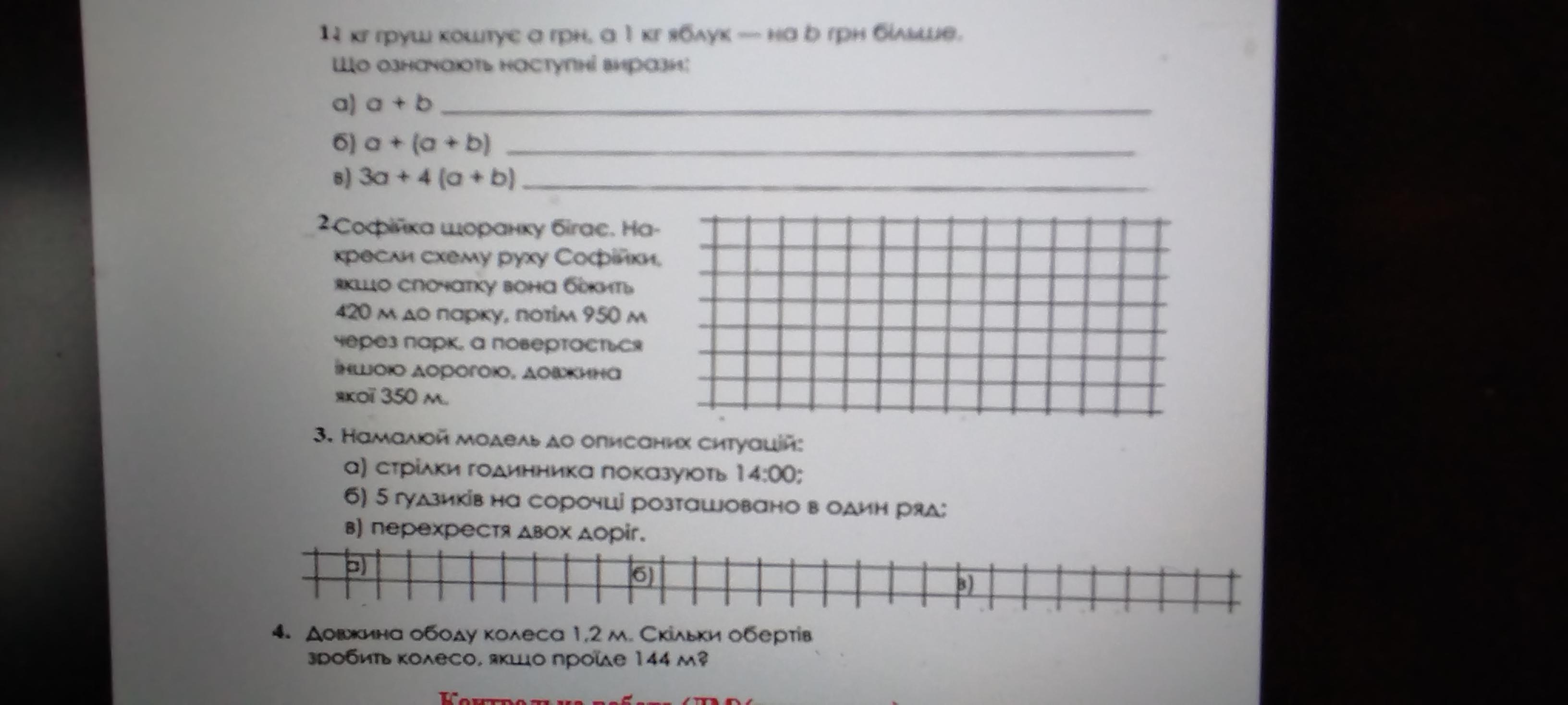 •3а+4(а+б) - знову користуємося тим, що вже написали. а - 1 кг, 3а - 2 кг. (а+б) - 1 кг, 4(а+б) - 4 кг... в принципі логічно... тому цей вираз значить ціну за 3 кг груш та 4 кг яблук