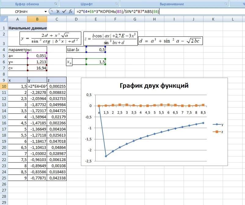 =B5^3+SIN(B5)^2-КОРЕНЬ(2*B6*B7)