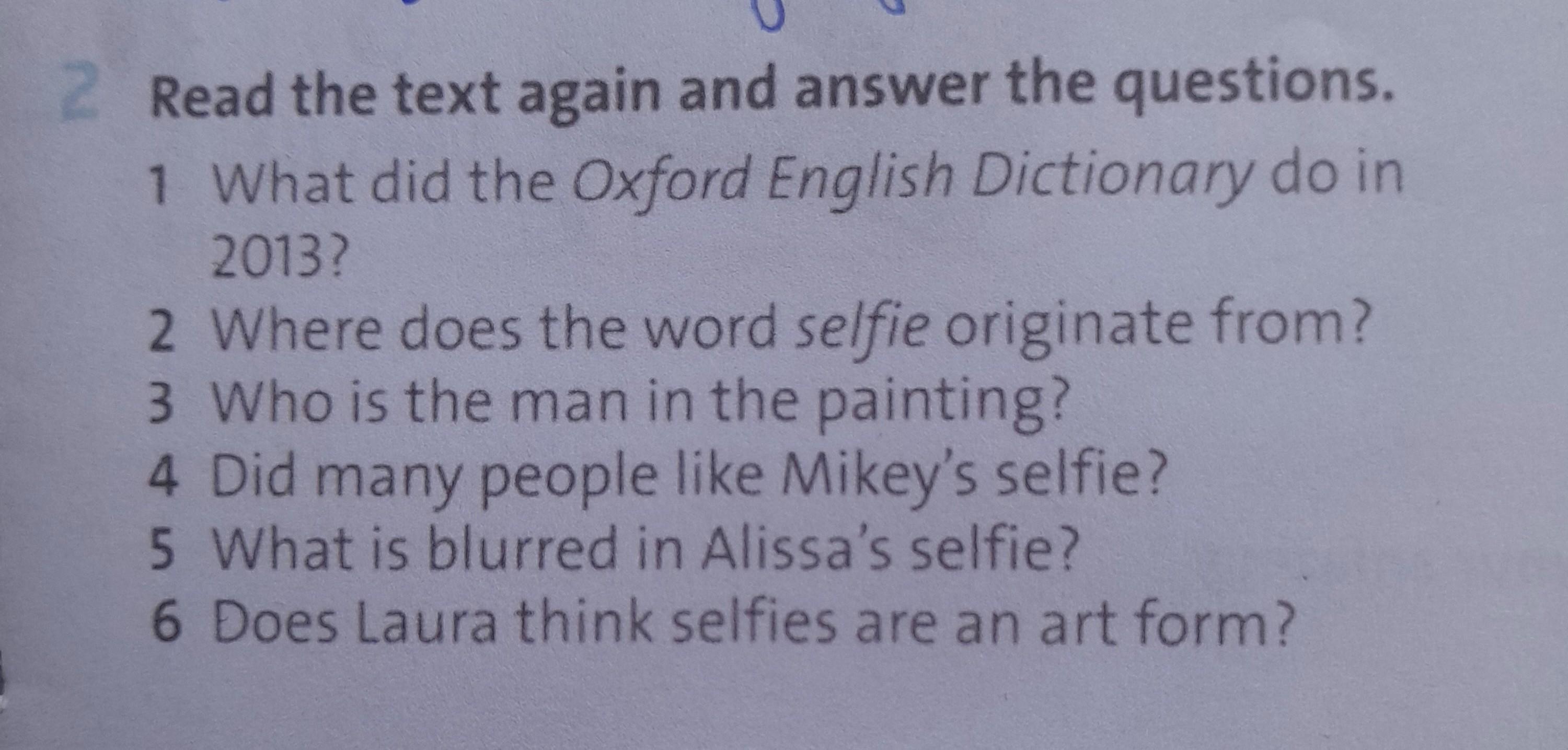 1) The compilers of the Oxford English Dictionary chose "selfie" as the word of the year 2013