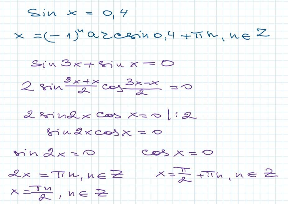 1) +-arcsin0,4+2πn, где n∈Z . Этот ответ не будет верным?