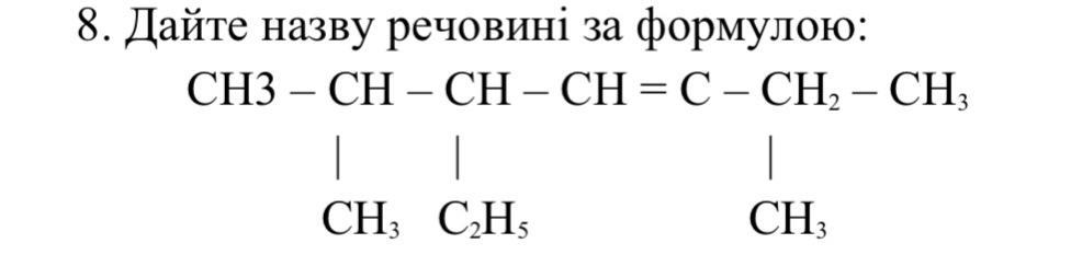 За наданою формулою, речовина має назву 2,4-диметил-3-етил-5-(2-етилбут-1-еніл)октан.