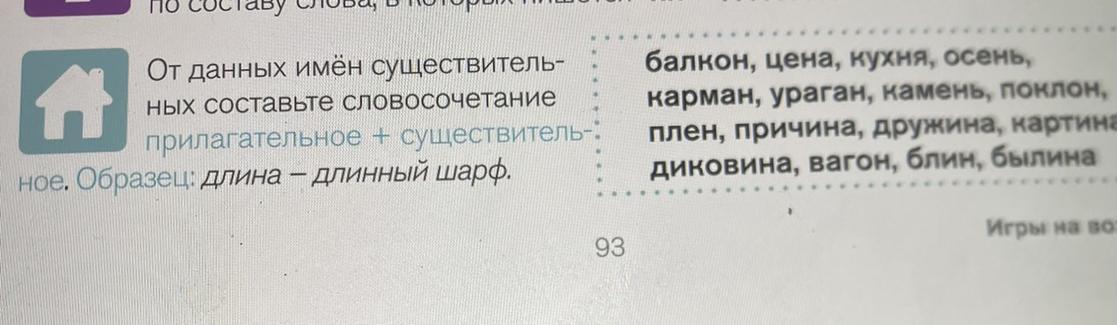 От данных имён прилагательных составьте словосочетание прилагательное + существительное.